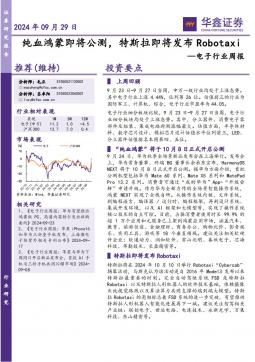 [半导体]2024-09-30-华鑫证券-电子行业周报:纯血鸿蒙即将公测,特斯拉即将发布Robotaxi-44页(银创产业通www.chanyetong.net)