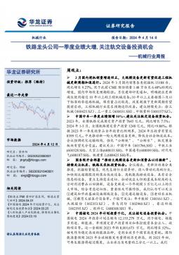 [通用设备]2024-04-16-华龙证券-机械行业周报:铁路龙头公司一季度业绩大增,关注轨交设备投资机会-1页(银创产业通www.chanyetong.net)(银创产业通www.chanyetong.net)