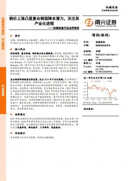 [通用设备]2024-04-24-甬兴证券-机械设备行业点评报告:铜价上涨凸显复合铜箔降本潜力,关注其产业化进程-3页(银创产业通www.chanyetong.net)(银创产业通www.chanyetong.net)