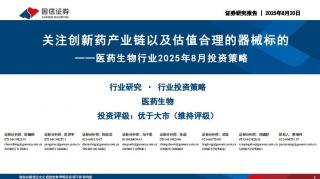[生物医药]2025-08-21-国信证券-医药生物行业2025年8月投资策略:关注创新药产业链以及估值合理的器械标的-38页(银创产业通www.chanyetong.net)