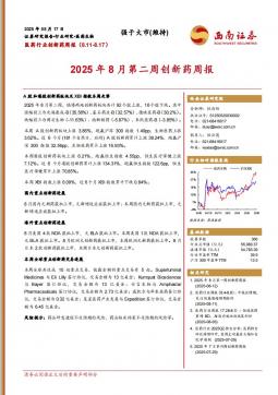 [生物医药]2025-08-18-西南证券-2025年8月第二周创新药周报-15页(银创产业通www.chanyetong.net)