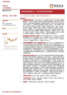 [医药]2025-07-29-华安证券-医药生物行业周报:医药细分行业持续发散,各细分行业进入逻辑挖掘期-16页(银创产业通www.chanyetong.net)