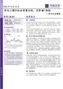 [消费电子]2023-10-15-华鑫证券-电子行业周报:华为上调手机出货量目标,问界M7热销-41页(银创产业通www.chanyetong.net)(银创产业通www.chanyetong.net)
