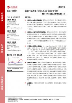 [通信]2023-05-29-东莞证券-通信行业周报:我国1-4月份电信业务收入同比增长7.2%-13页(银创产业通www.chanyetong.net)