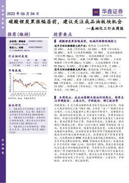 [化工]2023-06-05-华鑫证券-基础化工行业周报:碳酸锂炭黑涨幅居前,建议关注成品油板块机会-38页(银创产业通www.chanyetong.net)