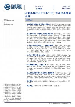 [化工]2023-12-06-海通国际-化工行业周报:近期纯碱行业开工率下行,市场价格持续走高-15页(银创产业通www.chanyetong.net)