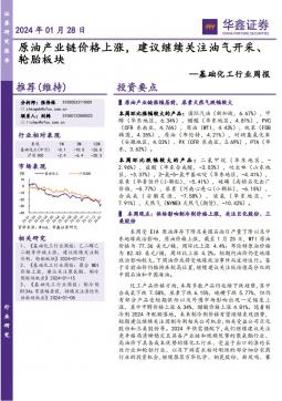 [化工]2024-01-29-华鑫证券-基础化工行业周报:原油产业链价格上涨,建议继续关注油气开采、轮胎板块-29页(银创产业通www.chanyetong.net)