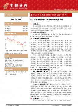 [化工]2024-04-01-中邮证券-基础化工行业周报:R32价格延续涨势,关注制冷剂投资机会-15页(银创产业通www.chanyetong.net)