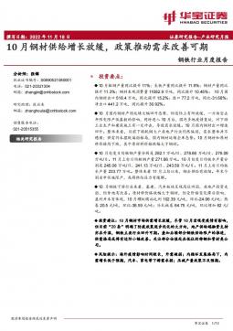 [金属]2022-11-18-华宝证券-钢铁行业月度报告:10月钢材供给增长放缓,政策推动需求改善可期-13页(银创产业通www.chanyetong.net)