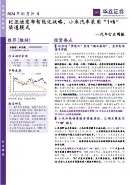 [汽车整车]2024-01-22-华鑫证券-汽车行业周报:比亚迪发布智能化战略,小米汽车采用“1+N”渠道模式-15页(银创产业通www.chanyetong.net)(银创产业通www.chanyetong.net)