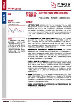[汽车整车]2023-03-21-东海证券-汽车行业周报:地方补贴、车企保价等有望推动乘用车消费恢复-12页(银创产业通www.chanyetong.net)(银创产业通www.chanyetong.net)