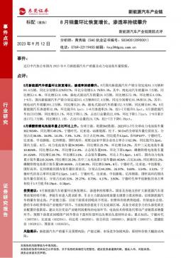 [新能源汽车]2023-09-12-东莞证券-新能源汽车产业链跟踪点评:8月销量环比恢复增长,渗透率持续攀升-2页(银创产业通www.chanyetong.net)(银创产业通www.chanyetong.net)