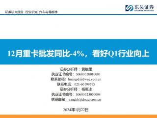 [汽车零部件]2024-01-22-东吴证券-汽车与零部件:12月重卡批发同比-4%,看好Q1行业向上-23页(银创产业通www.chanyetong.net)