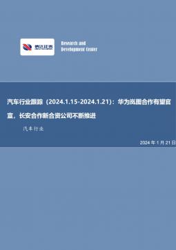 [汽车零部件]2024-01-21-信达证券-汽车行业跟踪:华为岚图合作有望官宣,长安合作新合资公司不断推进-23页(银创产业通www.chanyetong.net)(银创产业通www.chanyetong.net)