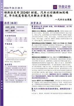 [汽车零部件]2024-04-29-华鑫证券-汽车行业周报:特斯拉发布2024Q1财报,汽车以旧换新细则确定,华为乾崑智能汽车解决方案亮相-16页(银创产业通www.chanyetong.net)(银创产业通www.chanyetong.net)