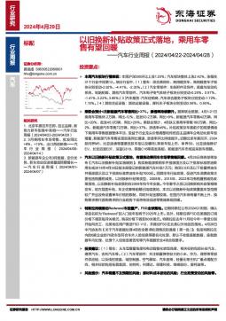 [汽车零部件]2024-04-29-国金证券-汽车及汽车零部件行业研究周报:以旧换新政策超预期,汽车景气度有望迎拐点-13页(银创产业通www.chanyetong.net)(银创产业通www.chanyetong.net)