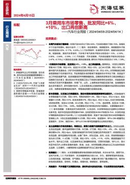 [汽车零部件]2024-04-15-东海证券-汽车行业周报:3月乘用车市场零售、批发同比+6%、+10%,出口再创新高-16页(银创产业通www.chanyetong.net)