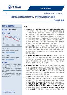 [汽车零部件]2024-04-16-华龙证券-汽车行业周报:消费品以旧换新方案发布,购车补贴细则渐行渐近-18页(银创产业通www.chanyetong.net)(银创产业通www.chanyetong.net)