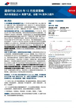 [通信]2025-11-30-国信证券-通信行业2025年12月投资策略:海外财报验证AI高景气度,谷歌TPU竞争力提升-20页(银创产业通www.chanyetong.net)