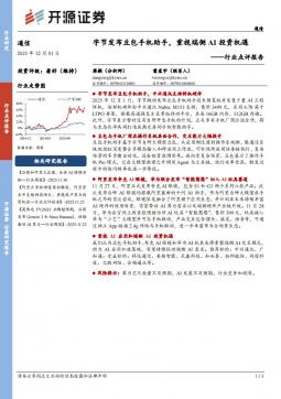[通信]2025-12-02-开源证券-通信行业点评报告:字节发布豆包手机助手,重视端侧AI投资机遇-3页(银创产业通www.chanyetong.net)