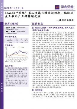 [通信]2023-11-21-华鑫证券-通信行业周报:SpaceX“星舰”第二次试飞结果超预期,低轨卫星互联网产业链持续受益-28页(银创产业通www.chanyetong.net)(银创产业通www.chanyetong.net)