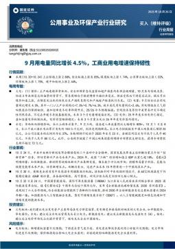 [电力电网]2025-10-26-国金证券-公用事业及环保产业行业研究周报:9月用电量同比增长4.5%,工商业用电增速保持韧性-14页(银创产业通www.chanyetong.net)