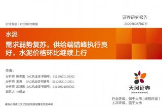 [无机材料]2022-08-08-天风证券-水泥行业研究周报:需求弱势复苏,供给端错峰执行良好,水泥价格环比继续上行-21页(银创产业通www.chanyetong.net)