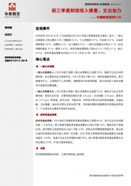 [宏观报告]中国财政系列十六:前三季度财政收入修复、支出加力(银创产业通www.chanyetong.net)