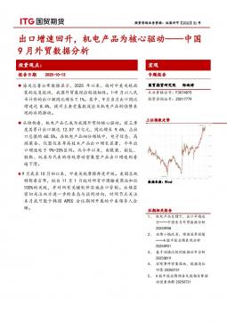 [宏观报告]中国9月外贸数据分析:出口增速回升,机电产品为核心驱动(银创产业通www.chanyetong.net)
