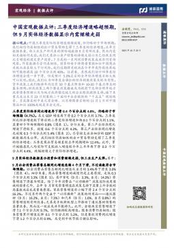 [宏观报告]中国宏观数据点评:三季度经济增速略超预期,但9月实体经济数据显示内需继续走弱(银创产业通www.chanyetong.net)
