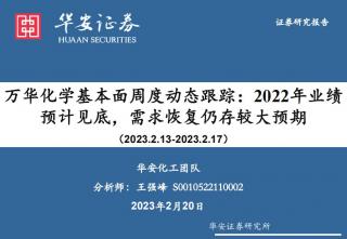 [化工]2023-02-20-华安证券-基础化工:万华化学基本面周度动态跟踪:2022年业绩预计见底,需求恢复仍存较大预期-30页(银创产业通www.chanyetong.net)