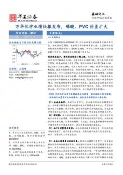 [化工]2023-02-20-华安证券-基础化工行业周报:万华化学业绩快报发布,磷酸、PVC价差扩大-40页(银创产业通www.chanyetong.net)
