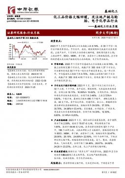 [化工]2023-02-10-中原证券-基础化工行业月报:化工品价格大幅回暖,关注地产链与轮胎、电子化学品行业-16页(银创产业通www.chanyetong.net)