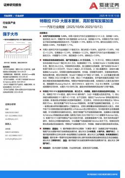 [汽车零部件]2025-10-13-爱建证券-汽车行业周报:特斯拉FSD大版本更新,高阶智驾发展加速-4页(银创产业通www.chanyetong.net)