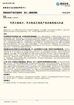 [信息技术]2022-09-05-国金证券-信息技术产业行业研究:问界月销破万,华为智选引领国产供应链智能化加速-4页(银创产业通www.chanyetong.net)(银创产业通www.chanyetong.net)