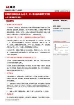 [云经济]2023-08-29-源达信息-云计算专题研究系列一:中国数字化建设推动企业上云,云计算市场规模破万亿可期-10页(银创产业通www.chanyetong.net)(银创产业通www.chanyetong.net)