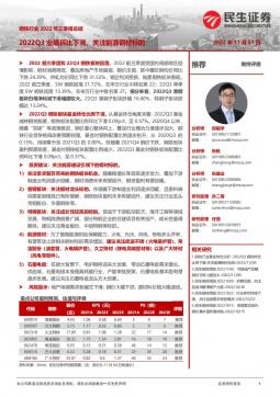 [金属]2022-11-08-民生证券-钢铁行业2022年三季报总结:2022Q3业绩环比下滑,关注能源钢材标的-23页(银创产业通www.chanyetong.net)