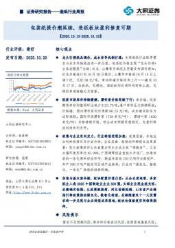 [轻工]2025-10-20-大同证券-造纸行业周报:包装纸提价潮延续,造纸板块盈利修复可期-9页(银创产业通www.chanyetong.net)