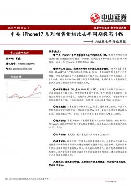 [消费电子]2025-10-24-中山证券-电子行业周报:中美iPhone17系列销售量相比去年同期提高14%-9页(银创产业通www.chanyetong.net)
