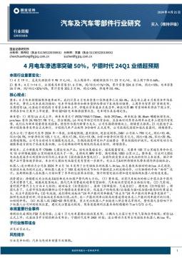 [汽车零部件]2024-04-22-国金证券-汽车及汽车零部件行业研究:4月电车渗透率突破50%,宁德时代24Q1业绩超预期-11页(银创产业通www.chanyetong.net)