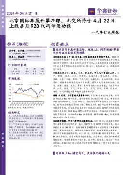[汽车零部件]2024-04-22-华鑫证券-汽车行业周报:北京国际车展开幕在即,北交所将于4月22日上线启用920代码号段功能-15页(银创产业通www.chanyetong.net)(银创产业通www.chanyetong.net)