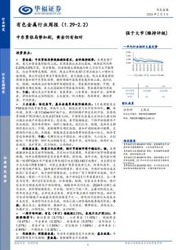 [金属]2024-02-05-华福证券-有色金属行业周报:中东紧张局势加剧,黄金仍有相对-16页(银创产业通www.chanyetong.net)