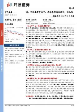 [金属]2024-02-05-开源证券-钢铁有色2024年1月月报:金、铜配置贯穿全年,高股息建议关注钼、铝板块-29页(银创产业通www.chanyetong.net)