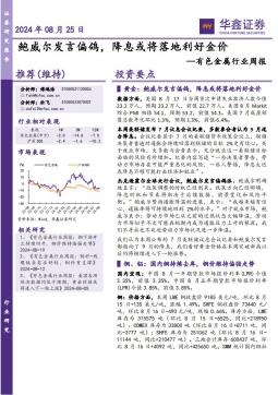 [金属]2024-08-26-华鑫证券-有色金属行业周报:鲍威尔发言偏鸽,降息或将落地利好金价-19页(银创产业通www.chanyetong.net)