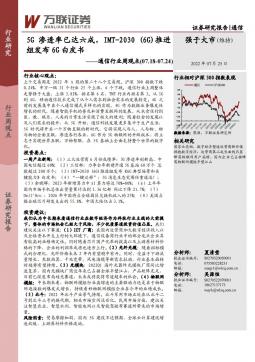 [5G]2022-07-25-万联证券-通信行业周观点:5G渗透率已达六成,IMT-2030(6G)推进组发布6G白皮书-12页(银创产业通www.chanyetong.net)(银创产业通www.chanyetong.net)