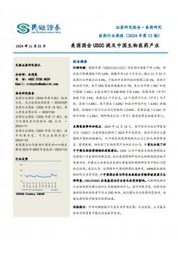 [医药]2024-11-26-民银证券-医药行业周报(2024年第13期):美国国会USCC提及中国生物医药产业-9页(银创产业通www.chanyetong.net)