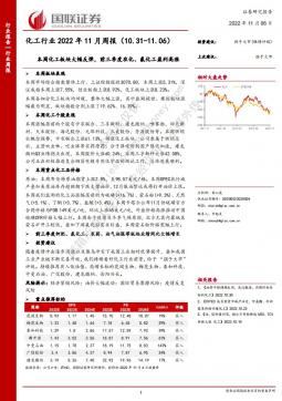 [化工]2022-11-07-国联证券-化工行业2022年11月周报:本周化工板块大幅反弹,前三季度农化、氟化工盈利高涨-15页(银创产业通www.chanyetong.net)