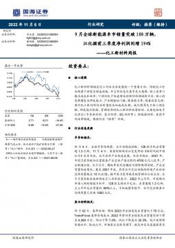 [化工]2022-11-07-国海证券-化工新材料周报:9月全球新能源车市销量突破100万辆,江化微前三季度净利润同增194%-39页