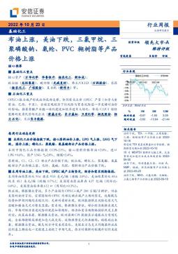 [化工]2022-10-24-安信证券-基础化工行业周报:布油上涨,美油下跌,三氯甲烷、三聚磷酸钠、氨纶、PVC糊树脂等产品价格上涨-5页(银创产业通www.chanyetong.net)