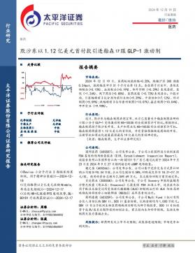 [医药]2024-12-23-太平洋-医药行业周报:默沙东以1.12亿美元首付款引进翰森口服GLP-1激动剂-3页(银创产业通www.chanyetong.net)